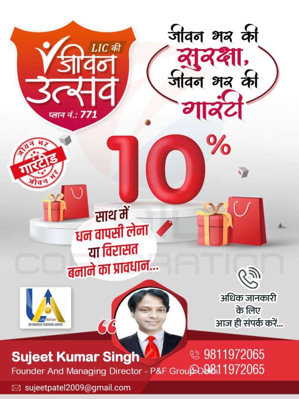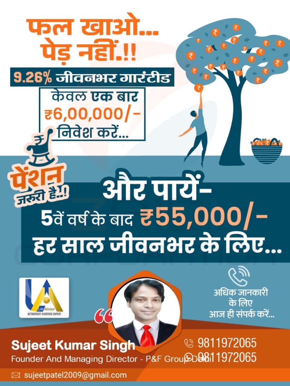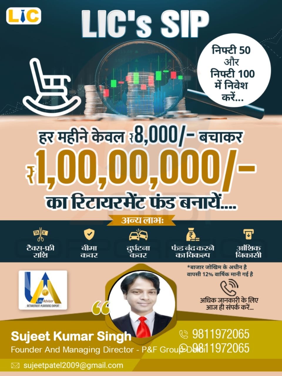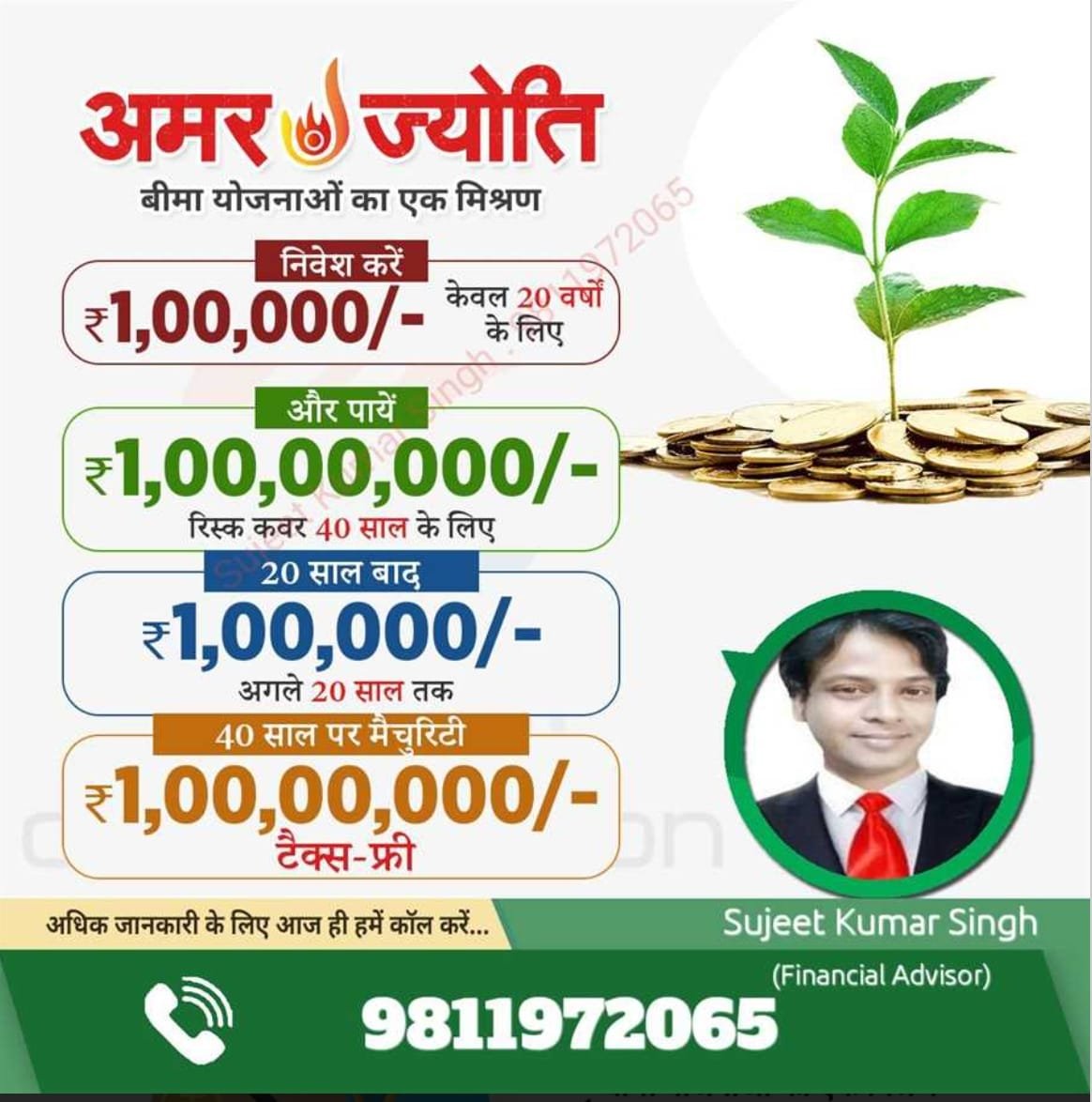 Thank you for visiting our website. I am Sujeet Kumar Singh. We specialize in Wealth Management Services and Insurance Consultancy services for all types of Insurances, such as Pension Plan, Health Insurance, Term Plan, Children education/ Marriage/Securing future, Financial Planning etc.